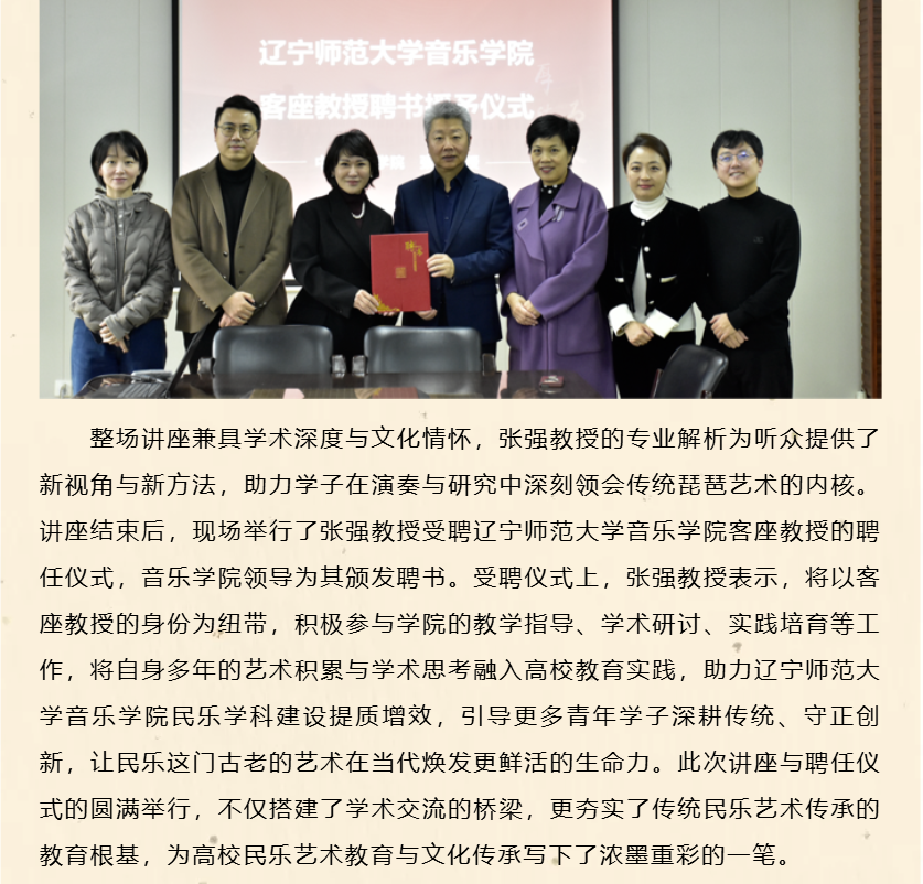 中央音乐学院张强教授莅临辽宁师范大学音乐学院举办琵琶学术讲座并受聘客座教授